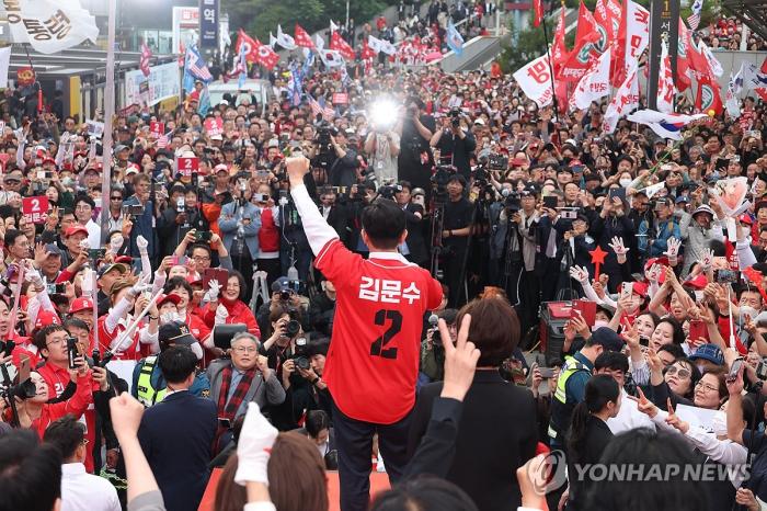 서울역에서 지지들에게 손을 흔들고 있는 김문수 후보국민의힘 김문수 대선 후보가 20일 서울과 경기 수도권 지역을 잇따라 방문하며 민생 행보와 정책 행보를 병행하는 강행군을 이어갔다. 전날에 이어 이…