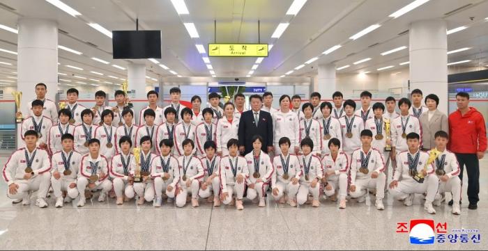 인터넷 캡쳐 - 조선중앙통신 116조선중앙통신은 10월 19일자 보도를 통해 “이딸리아(이탈리아)에서 열린 제23차 태권도세계선수권대회에서 46개의 금메달을 따고 종합우승을 차지한 북한 대표단이 귀국했다…