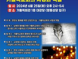 한반도의 평화와 화해를 위한 천주교 서울대교구의 노력이 계속되는 가운데, 오는 6월 25일(화) 오후 2시 서울 명동의 가톨릭회관 1층 대강당에서 ‘한반도 평화를 위한 신앙인의 길 : 가톨릭교회의 사명과 ...