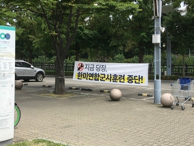 서울 월드컵경기장에 버젓이 붙어있는 현수막..