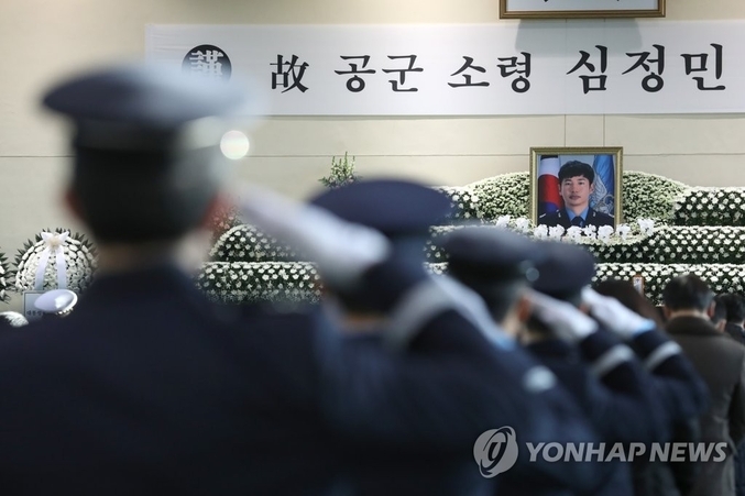 지난 11일 F-5E 경기 화성 전투기 추락 사고로 순직한 고(故) 심정민(29·공사 64기) 소령 영결식이 14일 경기 수원 제10전투비행단에서 부대장(葬)으로 엄수됐다...민간인 피해를 막으려고 비상 탈출을 하지 않은 채 야산에 추락해 숨진 20대 청년 장교의 죽음에 영결식장은 눈물바다였다. 2020년 11월 결혼 후 14개월 만에 남편을 잃은 아내는 영결식 내내 몸을 가누지 못했다. 행사가 끝날 때까지 비탄에 빠진 유족들의 모습에 참석자들은 눈물을 흘렸다...