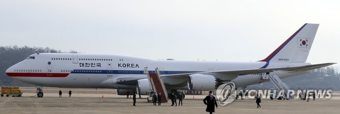문재인 대통령과 김정숙 여사가 중동 3개국을 방문하기 위해 15일 성남 서울공항에 도착... 문 대통령은 6박 8일 일정으로 아랍에미리트, 사우디아라비아, 이집트를 방문한다...새로운 대한민국 대통령 전용기인 ‘공군 1호기’가 15일 공개됐다. 문재인 대통령은 이날 중동 3개국 순방에 나서며 새 전용기에 첫 탑승했다...지난해 국방부는 이명박 정부 시절인 2010년부터 운항하던 공군 1호기 후속 기종으로 대한항공이 보유한 대형 여객기인 보잉747-8i를 5년간 3003억원에 임차하는 계약을 체결했다고 밝힌 바 있다...