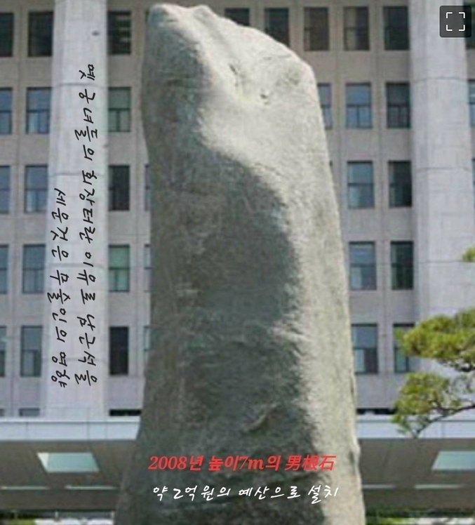 반면에, 여의도 국회의사당 뜰의 남근석(男根石)은 궁녀들의 시신을 화장한 곳이라 해서 노무현 전(前) 대통령 시절 국회 예산으로 세워진 미신의 상징이었다. 하지만 남근석을 세운 진짜 목적은 여야가 싸우지 말고 정치 잘하라는 무속인의 조언에 의한 결정체였다면, 여야 정치인들에게 말한다.
