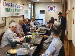 지난 28일 오후 1시 종로구 D 식당에서 회장으로 있는 이태섭 前 과기부 장관이 주축이 되어 4·19 당시 전국학생대표 20여 명이 모여 윤석열 대통령과 정부를 적극 지지한다는 결의를 다짐하는 자리를 만들었다.