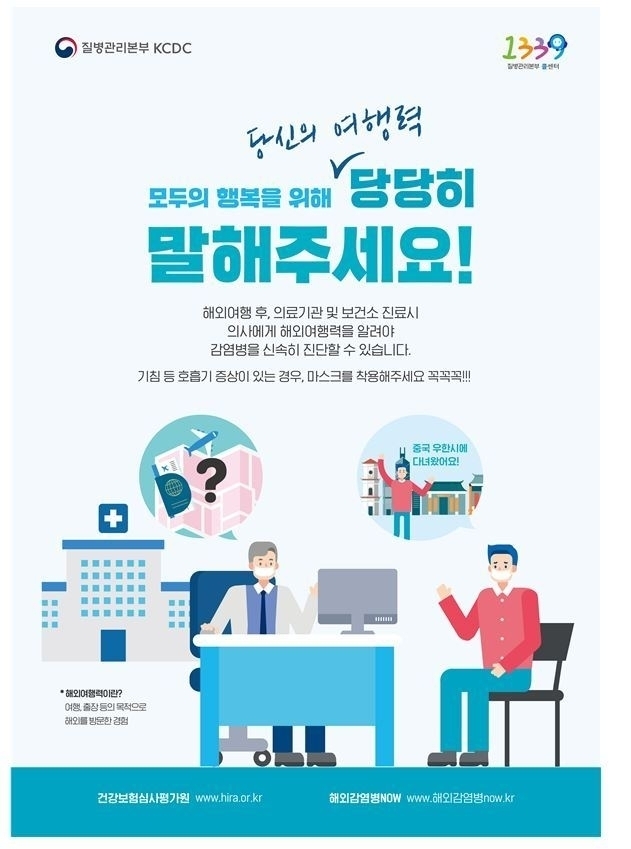 www.cdc.go.kr, 상단배너 ‘선별진료소)을 방문하거나, 관할 보건소, 지역 콜센터(☎지역번호+120)또는 질병관리본부 상담센터 (1339)로 상담해줄 것을 당부하였다.