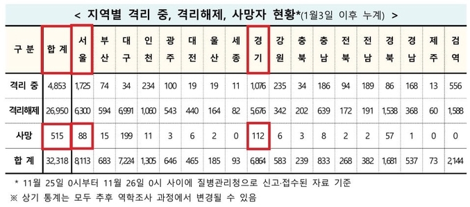 한편 본보(本報) 515명 사망자 정리 중 질병청과 차이가 나는 곳은 2곳이다. 본보(本報)는 서울 89명 사망, 충남 7명 사망이지만 질병청은 서울 88명, 충남 8명이다. 이는 앞서 사망자 이력 발표에서 지역 발표 오류로 판단되고 있다. 향후 정정할 부분이 있으면 안내 후 정정할 예정이다.