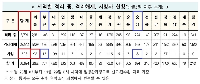 한편 본보(本報) 526명 사망자 정리 중 질병청과 차이가 나는 곳은 2곳이다. 본보(本報)는 서울 94명 사망, 충남 8명 사망이지만 질병청은 서울 93명, 충남 9명이다. 이는 앞서 사망자 이력 발표에서 지역 발표 오류로 판단되고 있다. 향후 정정할 부분이 있으면 안내 후 정정할 예정이다.