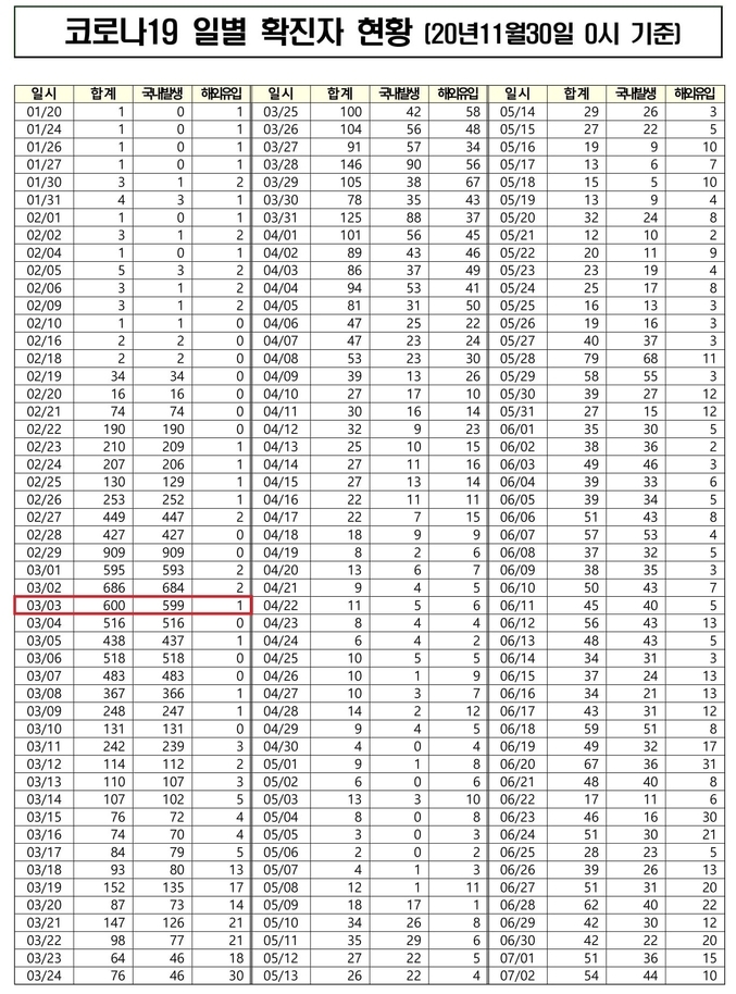 일일 확진 환자 600명대는 지난 2월~3월 대구·경북 중심의 ‘1차 유행’ 이후 9개월여 만에 처음이다. 정확히는 지난 3월3일 600명(지역 599명, 해외유입 1명) 이후 276일만이다.