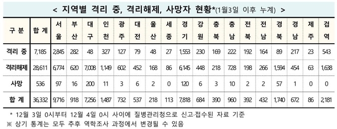 이 밖에 현재 7천185명이 격리중이며, 위중증 환자는 116명이며, 사망자는 7명으로 누적 사망자는 536명이다. 국내 평균 치명률은 1.48%다.