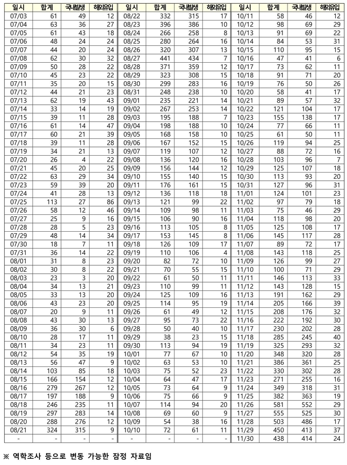 질병관리청 중앙방역대책본부는 당일 오전 0시를 기준으로 국내 코로나19 일별 환자 통계를 발표한다.