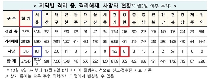 한편 본보(本報) 545명 사망자 정리 중 질병청과 차이가 나는 곳은 2곳이다. 본보(本報)는 서울 102명 사망, 충남 9명 사망이지만 질병청은 서울 101명, 충남 10명이다. (상기 표 파란 네모 박스 참고) 이는 앞서 사망자 이력 발표에서 지역 발표 오류로 판단되고 있다. 향후 정정할 부분이 있으면 안내 후 정정할 예정이다.