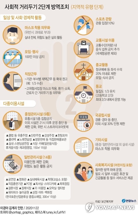 사회적 거리두기 2단계 방역조치 내용이다. 사진=연합뉴스 제공.," xtype="photo">