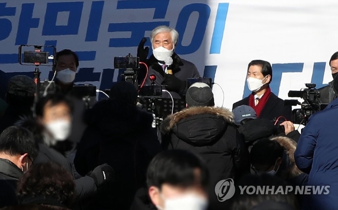 이날 가진 기자회견을 통해 전 목사는 "대한민국이 죽어서 해체되고 연방제 통일로 가는 것을 막을 수 있다면 생명을 던지겠다"고 목소리를 높이기도 했다. [연합뉴스 제공]