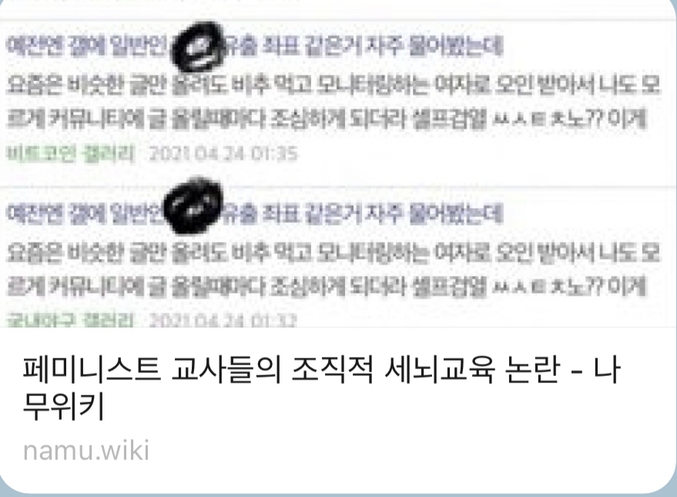 인터넷 커뮤니티에서 ‘ 페미니스트 교사조직의 세뇌교육 및 학대 계획 사건’ 이라는 제목의 글에 들어가면 다음과 같은 ‘아카이브’ 라는 사이트 주소가 뜬다. 거기에 나오는 내용의 일부를 공개한다.