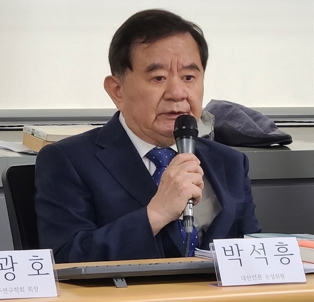 첫 번째 발제자로 나선 박석흥 논설위원은 "이재명 경기지사의 안동 발언과 같이 역사는 정치이념 선전선동 도구가 아니고, 공동체가 달성해야 할 가치를 추구하기 위한 거울이어야 한다."고 전제했다. 이어서 "역사를 정치 목적을 위해 왜곡하는 것은 전체주의 국가에서 저질러지는 범죄이며, 20대 대선이 586 좌편향 운동권의 사회주의혁명·낭만적민족주의·환상적 평화통일론의 미몽에서 깨어나 대한민국이 정체성과 정통성을 바로잡는 대전환의 전기가 되어야 할 것"이라고 강조했다.