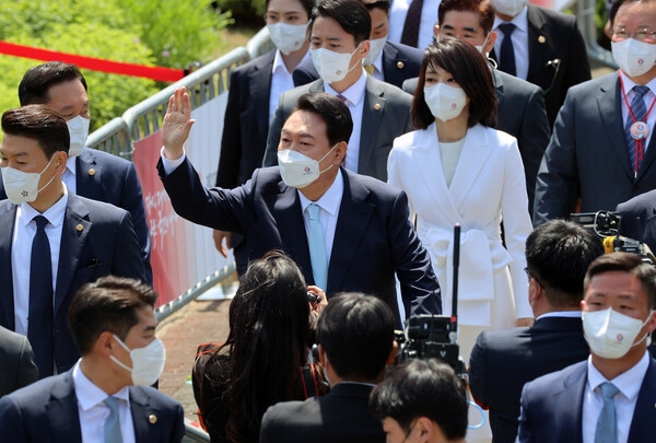 윤 대통령은 10일 0시를 기해 용산의 대통령 집무실 지하에 자리한 국가위기관리센터(지하벙커) 상황실에서 국군통수권을 이양받는 것으로 첫 집무에 돌입한데 이어, 오전 9시 50분께 부인 김건희 여사와 함께 취임식 참석을 위해 자택을 출발했다.