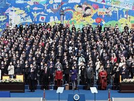 윤 대통령은 먼저 "자유민주주의와 시장경제 체제를 기반으로 국민이 진정한 주인인 나라로 재건하고, 국제 사회에서 책임과 역할을 다하는 나라로 만들어야 하는 시대적 소명을 갖고 이 자리에 섰다"고 일성을 띄웠다.