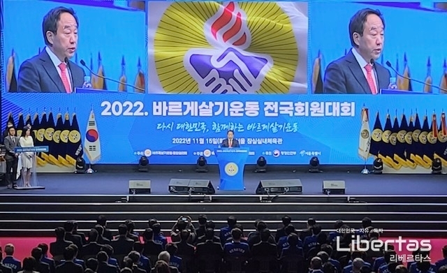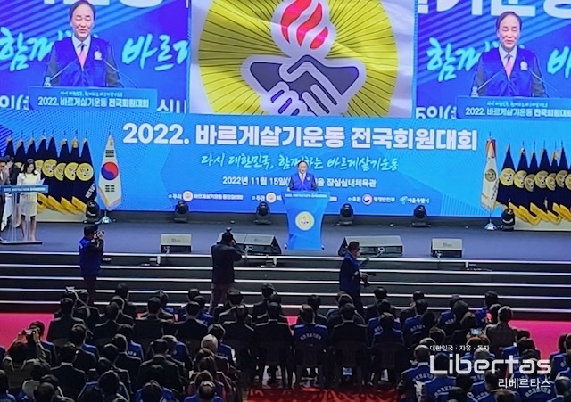 오늘(15일) 회원 8천여명이 참석한 서울 잠실실내체육관에서 ‘다시 대한민국, 함께하는 바르게살기운동!’이라는 슬로건으로 행사가 개최됐다.
