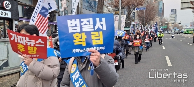 발대식을 마친 참석자들은 “거짓뉴스 추방하자”, “법질서를 확립하자”라는 구호를 외치며 남영역 인근까지 거리캠페인을 전개하고 행사를 마무리했다.