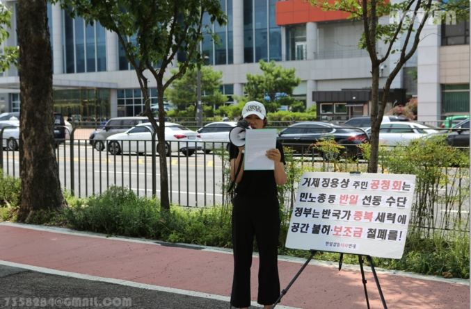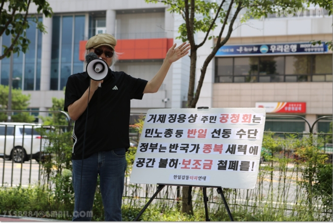 거제지역에 ‘일제강제징용노동자상(징용상)’ 건립을 반대하는 ‘한일갈등타파연대’(한타련, 대표 : 최덕효)는 지난 7월 19일 오전 용산 대통령실 건너편에서 기자회견을 갖고, 민주노총과 야당이 징용상 건립(8·15 광복절)을 강행하기 위해 개최 예정인 공청회(7월 25일 장승포 시민센터)를 불허할 것을 촉구했다.
