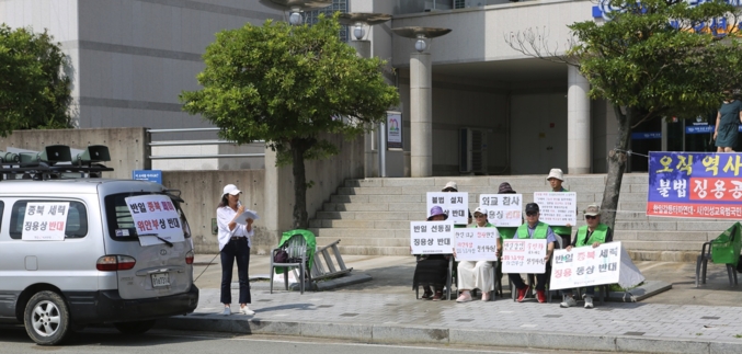 둘째, 징용상이 불법으로 설치되어도 해당 지자체의 공권력은 유명무실했다. 여기에는 특정 노조의 영향력과 공무원들의 복지부동이 작용하고 있다. 범시민단체의 직접행동은 공권력의 무능을 타격했다.
