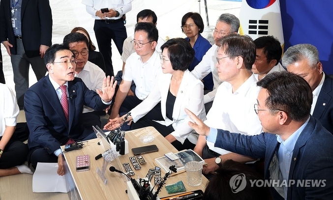▪ 천막을 호위하는 측근들은 단식호소인이 불편한 안색을 보이자마자 태 의원을 상가집에 찾아온 각설이 마냥 쫓아내 버리고 말았다. 끌려 나가는 태 의원을 바라보며 이재명은 보란 듯이 측근들과 뒷담화를 나누었다. “자기도 살아남는 방법이라 생각해서 하는 거겠지, 저래도 못 살아남을 것 같은데! 공산당이었던 사람을 국회의원까지....!” 이에 곁에 앉은 ‘윤호중’ 이 이재명의 말을 거들었다. “어찌 인두겁을 쓰고 저럴 수가....!”