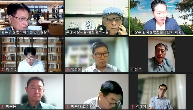 한국청렴청문가협회(회장 이상수)와 대한민국투명세상연합(상임대표 송준호)은 지난 9월 30일, '청탁금지법(일명 김영란법) 시행 8년을 돌아보고 실효성 제고방안'을 모색하는 Zoom 화상 포럼을 개최하였다.
