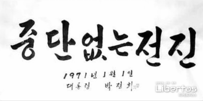 박정희 대통령의 휘호(揮毫)에도 나오는 말이다. 중단(中斷)없는 전진(前進).