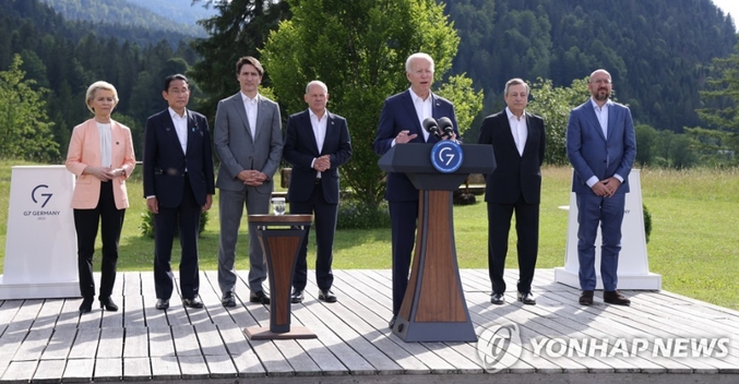 앞서 G7 정상들은 지난달 28일(현지시간) 독일 바이에른주 엘마우성에서 사흘간 진행된 정상회의 중 회의 마지막날 채택한 코뮈니케(공동성명)에서 "북한이 3월24일과 5월25일에 실시한 대륙간탄도미사일(ICBM) 발사를 포함해 탄도미사일에 대한 지속적이고 불법적인 실험을 강력히 규탄한다"라고 밝혔다.