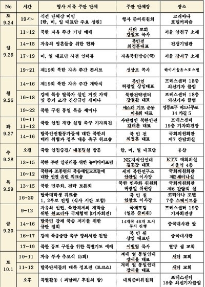 이번 ‘북한자유주간’ 행사는 오는 9월 25일부터 10월 1일까지 서울 전역에서 진행될 예정이다. 행사 진행 사항은 다음과 같다.