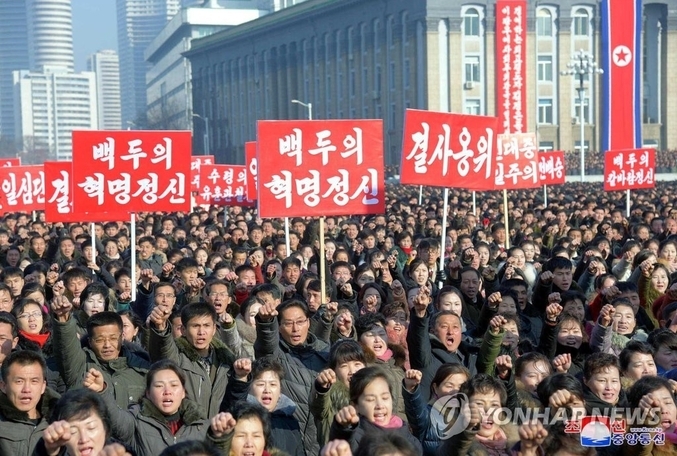 궐기대회에 이어진 군중시위에서는 '위대한 김정은 동지 따라 주체혁명 위업을 끝까지 완성하자' 등이 쓰인 플래카드와 '인민경제발전 12개 고지 점령' 등 표어를 든 시위대가 행진했다고 통신은 전했다.