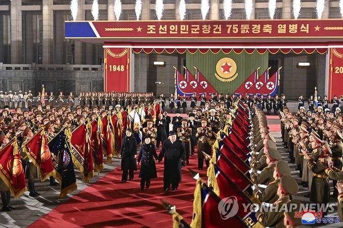 북한은 지난 8일 조선인민군 창건(건군절) 75주년을 맞아 평양 김일성광장에서 야간 열병식을 개최했다.