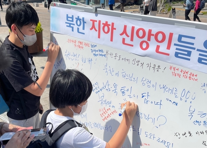"북한 지하신앙인들을 응원합니다. 북녘땅에 신앙의 자유를!"