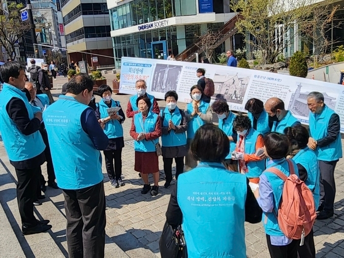 천주교 서울대교구 평신도사도직단체협의회 소속 화해평화위원회(이하 서울대교구 평단협 화평위)가 2일 명동성당 입구에서 2023 가톨릭 평신도 거리전교ㆍ기도운동(제목 : 북녘땅에 신앙의 자유를!)을 시작했다.