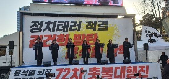 통신은 “한 겨울의 추위속에서도 수많은 각계층 군중이 초불을 들고 투쟁의 거리들에 떨쳐나섰다. 82개의 시민사회단체들로 구성된 비상행동을 비롯한 각계 단체들이 서울의 곳곳에서 집회들을 가지고 2024년을 윤석열 퇴진의 해로 만들기 위해 전 지역적인 집중투쟁을 벌려나갈 의지를 피력하였다.”고 했다.