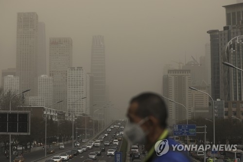 중국 베이징 최악 황사…"숨쉬기도 힘들다"