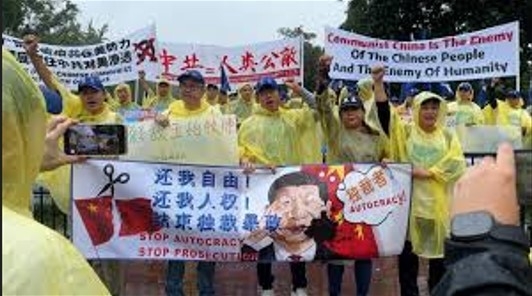 이날 집회에는 중국에서 박해를 피해 미국으로 온 강(江) 씨도 참석했다. 그는 "여기서는 발언에 제약이 없다"며, "천안문에서 이런 말을 하면 금방 잡힐 것"이라고 말했다.