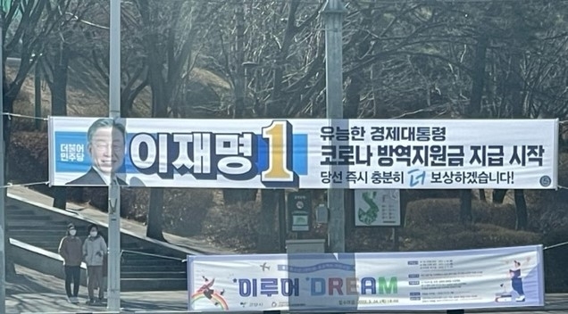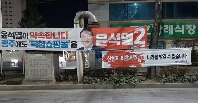 휴일인 일요일을 기해 대거 부착된 것으로 보이는 불법 현수막은 유력 대권주자인 윤석열 후보 현수막 옆에 집중되었다. 내용도 또한 뜬소문에 불과한 내용들을 버젓이 사실인 양 유권자들을 오도할 목적으로 작성되었다.