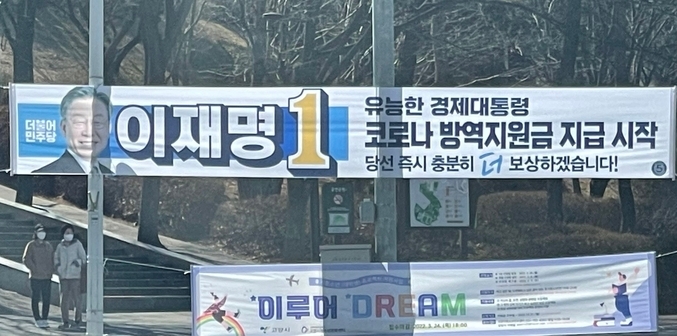 그런데 지금이 어느 세상인가. 버젓이 선거기간 중 공식 현수막에 돈을 더 지급하겠다는 문구까지 허용하다니 이게 말이나 될 법한 건가. ‘당선 즉시 더 보상하겠다’는 문구 앞에서는 그저 할 말을 잃었다.