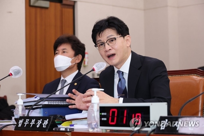 한 장관은 '50억 클럽' 특검 도입론에는 "특검은 수사 의지가 없거나 수사 능력이 없을 때 하는 것"이라며 "현 수사팀이 국민께 반드시 의미 있는 수사 결과를 내놓을 것이고, 누군가를 봐주는 그런 것은 절대 없을 것"이라고 강조했다.