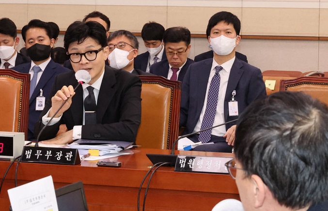 한 장관의 입장문을 보면, “박주민 의원 등 민주당 의원들이 돌아가며 ‘모욕감’ 얘기를 한다”면서 “자기편이 한 자기 당 대표에게 불리한 진술을 뒤집어보려고 노골적인 사법방해를 하는 것에 대해 ‘창피함’은 못 느끼고, ‘모욕감’만 느끼느냐”고 했다. 그러면서 “지금 민주당의 노골적 사법방해로 모욕당하고 있는 것은 우리 사법시스템”이라고 꼬집었다.