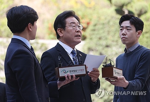 이 대표는 중앙지법 서관 입구 앞에 도착한 뒤 A4 용지를 꺼내 들고 “오늘 저는 2년째 겪고 있는 억울과 부당함, 그리고 정치검찰의 무도함에 대해선 말씀드리지 않겠다. 저와 제 가족이 겪고 있는 고통과 불편이 아무리 크다 한들 국민 여러분께서 겪는 삶의 고통에는 비할 바가 못 될 것”이라며 입을 열었다.