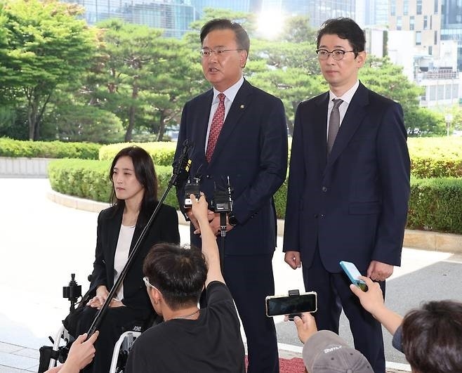 유상범 국민의힘 '이재명 사법 파괴 저지' 특별위원회 위원장은 이날 서울 서초구 대법원 청사를 방문해 이재명 대표 사건 재판의 신속한 판결을 촉구하는 입장을 전달했다. 이 자리에는 최보윤 의원과 주진우 특위 간사도 함께 했다.