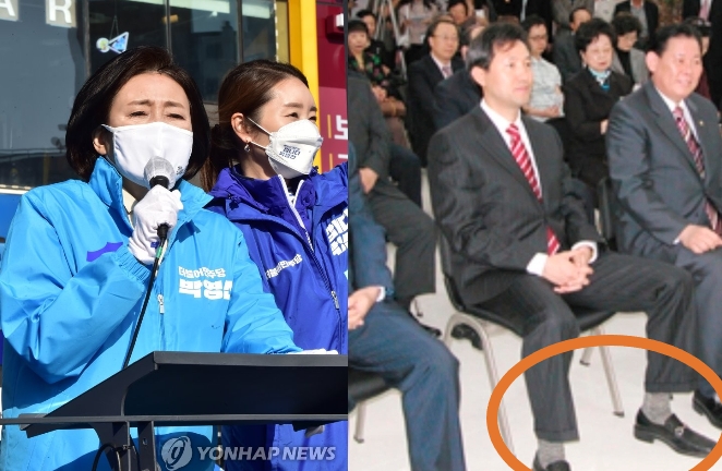 “측량”을 강조함으로써, ‘국힘’후보의 섬세함과 자상함을 널리 홍보해줬다. ‘전통 찌개’[생태탕]와 ‘명품 구두’[페라가모]의 절묘한 배합으로 후보의 조화로운 감각을 한층 돋보이게 만들었다. 더군다나 ‘백바지’와 ‘썬글라스’의 증언을 이끌어내면서 청량한 이미지까지 풍기게 기막힌 연출을 해냈다.