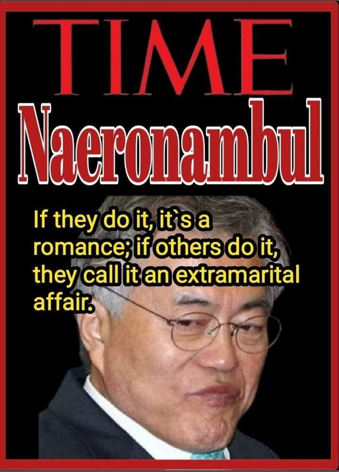 “NYT(뉴욕타임즈)는 한국 유권자들이 문 대통령의 측근들의 행태에 대해 느끼는 반감을 설명하며 ‘내로남불’(Naeronambul)이란 유행어를 언급하기도 했다. NYT는 ‘내로남불’에 대해 ‘내가 하면 로맨스이고, 다른 사람이 하면 불륜(If they do it, it’s a romance; if others do it, they call it an extramarital affair.)으로 해석된다’고 소개했다...”