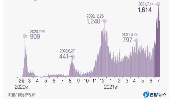 20일... 0시부터 오후 9시까지 전국에서 코로나 양성 판정을 받은 신규 확진자는 총 1681명으로 집계됐다... 오후 9시까지만 집계한 수치지만 이미 역대 하루 최다 확진자수 기록을 넘어섰다...