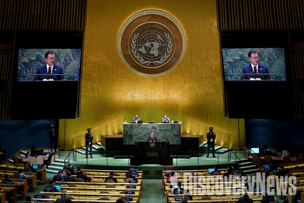 연일 북한의 미사일 도발이 있었음에도 UN연설 내내 북한의 도발이나 북한의 새로운 미사일 유형, 북한 핵문제에 대해서는 단 한마디도 하지 않고, 오로지 종전선언과 평화협정의 중요성을 강조했으니 말이다.