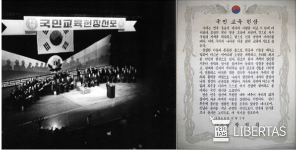 국민교육헌장의 역사적 소멸과정과 기적의 대한민국 몰락 현상은 정확히 비례한다. 반공민주정신을 퇴행적이라고 억압하는 반동(反動)이 바로 그 시작점이었음을..
