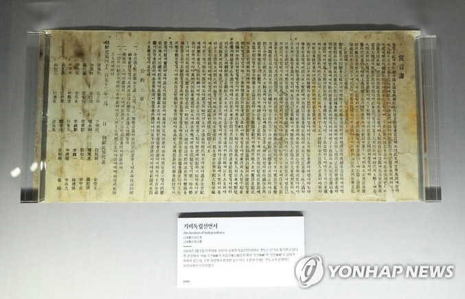 “吾等은玆에我朝鮮의獨立國임과朝鮮人의自主民임을宣言하노라.此로써世界萬邦에告하야人類平等의大義를克明하며此로써子孫萬代에誥하야民族自存의正權을永有케하노라...”