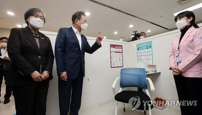 “문재인 대통령이 26일 국내 처음으로 시작된 코로나19 백신 접종 현장을 찾았다... 이날 서울 마포보건소에서 진행된 백신 접종 현장에서 문대통령은 이 병원 1, 2번 접종자의 접종을 지켜봤다...”